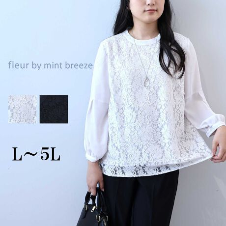 マルイウェブチャネル   /   フルールbyミントブリーズ   /   トップス   /   ブラウス   /   【大きいサイズ】フロントレースボリュームスリーブブラウス