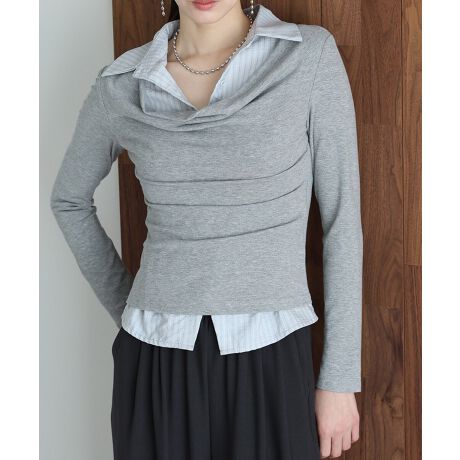 シャツレイヤードドレープトップス