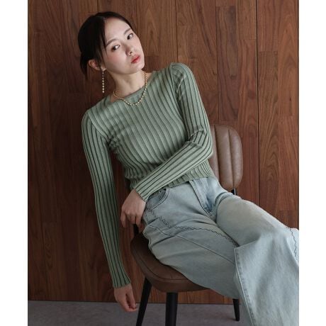 凛としたタイトシルエット。縦ラインが際立つ、大人のリブニット