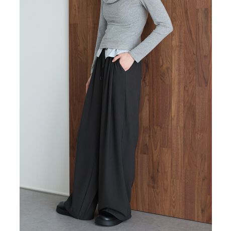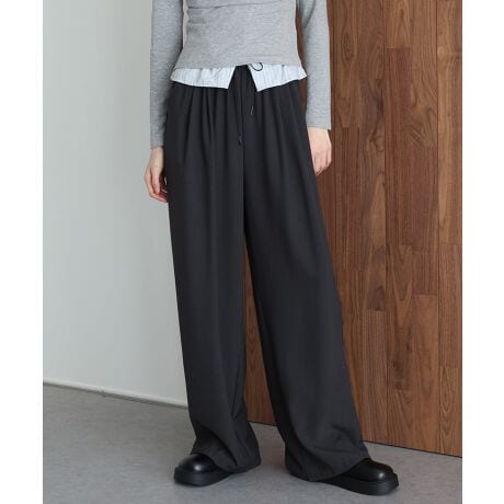 ウエストに通した、レザーのような質感のコードがポイントになるパンツ。