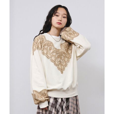 カジュアルなスウェットにレースを組み合わせたミックス感が魅力の一枚です。