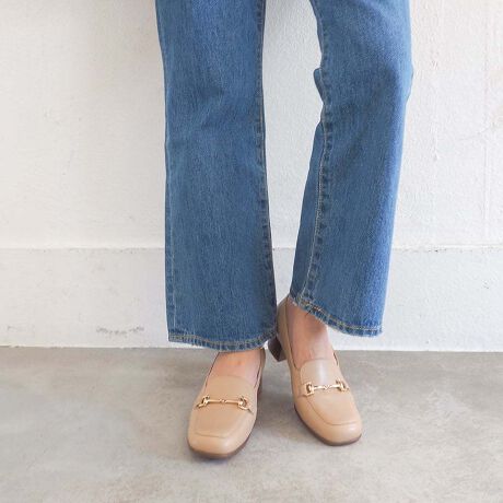 クラシックなローファーデザインを、女性らしいヒールシルエットに落とし込みました。