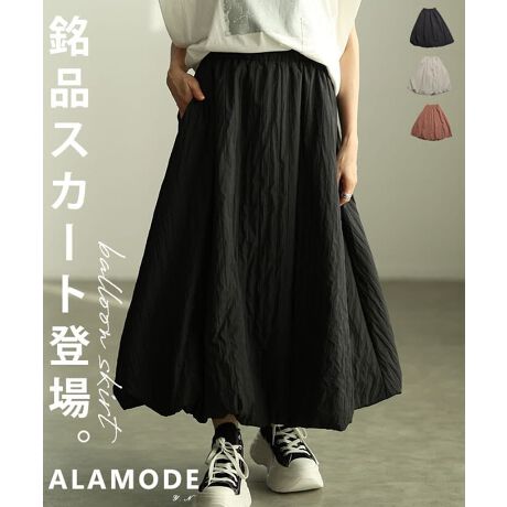 シボ調生地ならではの表情が楽しめるバルーンスカート。広がりすぎないシルエットで甘さを抑え、大人でも取り入れやすい仕上がりに。穿くだけでコーデに立体感が生まれる一枚です♪