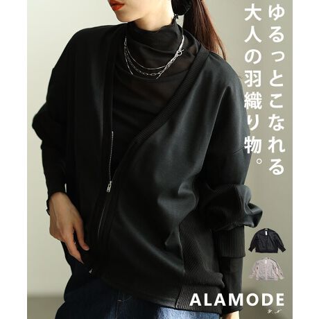 異素材の切替デザインがさりげなく効いたZIPカーディガン。羽織るだけでコーデに表情が生まれ、シンプルなのにどこか今っぽい仕上がりに。季節の変わり目にも重宝する、頼れる一枚です♪