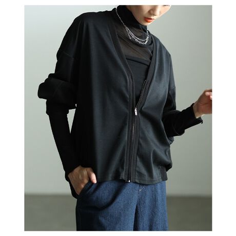 異素材の切替デザインがさりげなく効いたZIPカーディガン。羽織るだけでコーデに表情が生まれ、シンプルなのにどこか今っぽい仕上がりに。季節の変わり目にも重宝する、頼れる一枚です♪