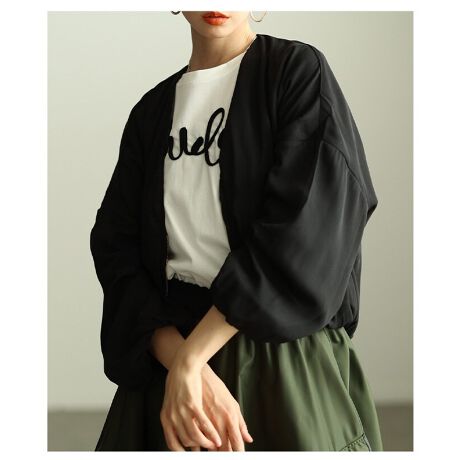 ボレロ風デザインが目を惹く、ふんわり袖のライトブルゾン。ショート丈でバランスが取りやすく、さっと羽織るだけでコーデに立体感が生まれます。季節の変わり目にちょうどいい、軽やかな一枚です♪