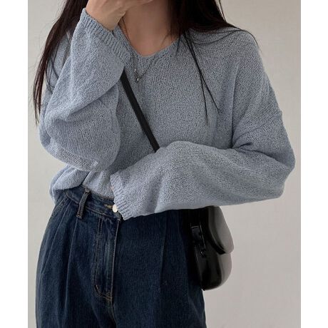 透け感ニットトップス Vネック 長袖春服