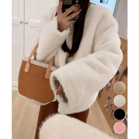 上品な起毛感が目を引く、ノーカラーデザインのファージャケット。
