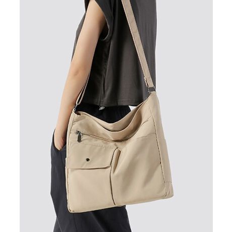 軽量で持ちやすいナイロン素材を使用した、男女兼用の大容量ショルダーバッグ。