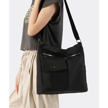軽量で持ちやすいナイロン素材を使用した、男女兼用の大容量ショルダーバッグ。