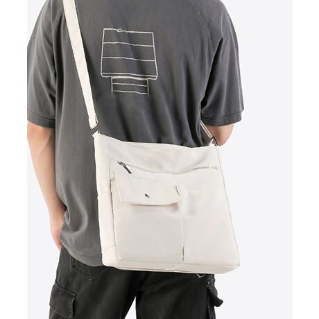 軽量で持ちやすいナイロン素材を使用した、男女兼用の大容量ショルダーバッグ。