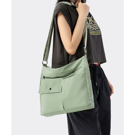 軽量で持ちやすいナイロン素材を使用した、男女兼用の大容量ショルダーバッグ。