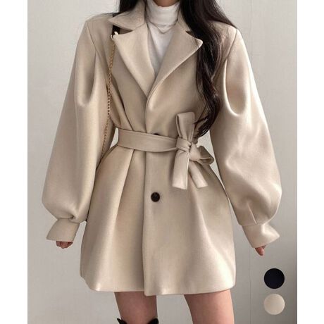 立体的なシルエットとウエストベルトで、スタイルアップ見えと暖かさを両立。