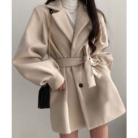 上品でクラシカルな印象を与える、ウールタッチ素材のミドル丈コート。