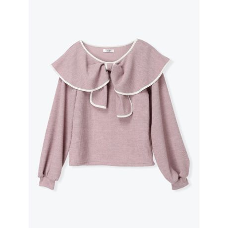 [型番:25550723355]配色パイピングのデザインが表情感を演出するプルオーバー。フロントはリボンモチーフになっており、ガーリーなムードをプラスします。動きやすく伸縮性のある生地が魅力的。休日のお出かけやタウンユースなど、幅広いシーンで活躍してくれます。