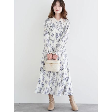 [型番:25550726002]胸元のフラップポケットにリボンをあしらったデザインが可愛らしいワンピース。袖口はキャンディースリーブになっており、くしゅっとした表情感を楽しめます。やさしい印象を与える花柄のデザインがポイント。1枚で休日のお出かけコーデが完成するアイテムです。モデル(白着用)身長:160cmMサイズ着用