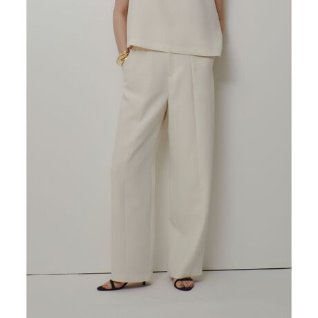 トップスとパンツのSET UP企画です。コンパクトな着丈感のトップスに、程よくカーブの付いたボリュームのあるパンツは合わせて頂くとスッキリとしたバランスです。