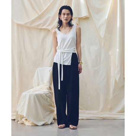 トップスとパンツのSET UP企画です。コンパクトな着丈感のトップスに、程よくカーブの付いたボリュームのあるパンツは合わせて頂くとスッキリとしたバランスです。