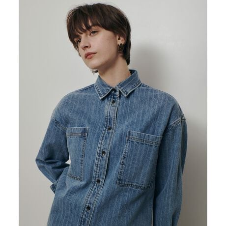 シャツはビックパッチポケットをポイントに程よい大人のカジュアル感を出していますがシャツに落とし込む事で軽さやモダンさを出しています。