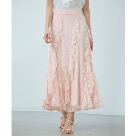 柔らかなレース生地のミモレ丈ロングフレアスカート。