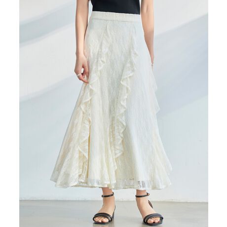 柔らかなレース生地のミモレ丈ロングフレアスカート。