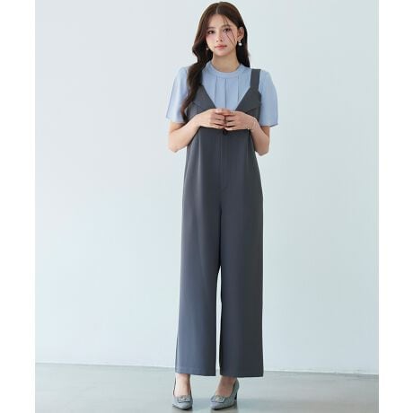 折り返しデザインが目をひくゆったりシルエットのサロペット。