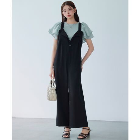 折り返しデザインが目をひくゆったりシルエットのサロペット。