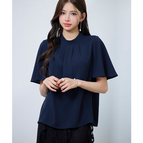 前襟タックデザインがあしらわれた大人きれいめなバンドカラーブラウス。