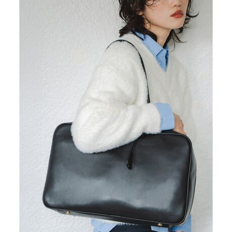 シンプルで洗練されたベーシックなスクエアボストンバッグ。