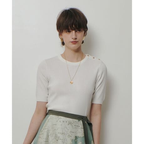 左肩のエポーレットに飾り釦を配し、定番カーディガン(20261016420・20261016430)とのアンサンブルはもちろん単品でも着映える存在感をプラス。