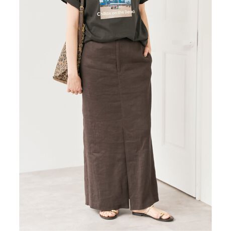 軽やかな落ち感が魅力の、リネンストレッチIラインスカート。