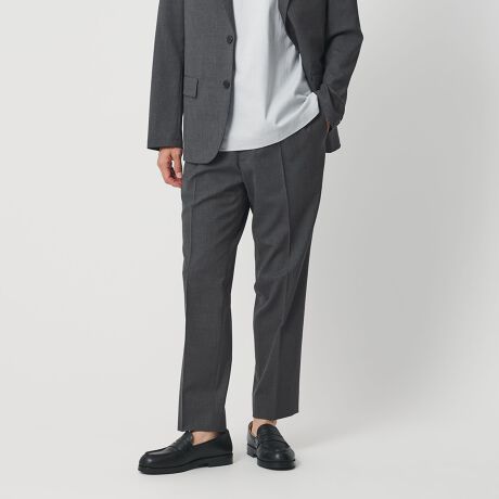 ヒップからわたりにかけて少しだけゆとりを持たせたテーパードスラックス。