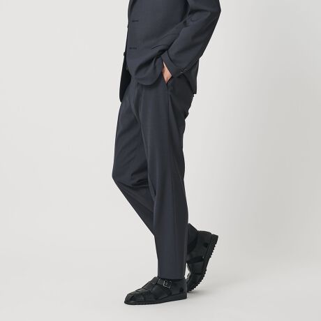 ヒップからわたりにかけて少しだけゆとりを持たせたテーパードスラックス。
