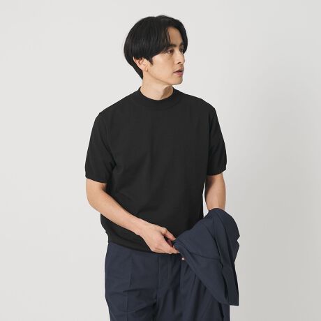 トレンドに左右されない、シンプルでベーシックなモックネックのような襟型のニットです。