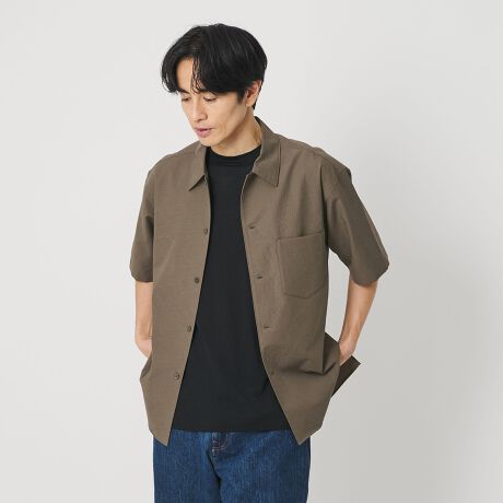 程良いゆとり感で羽織れるボックスシルエットのキャンプカラーショートスリーブシャツ。