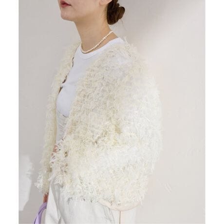 エアリーなチュールテープが、華やかなムードを纏えるカーディガン。