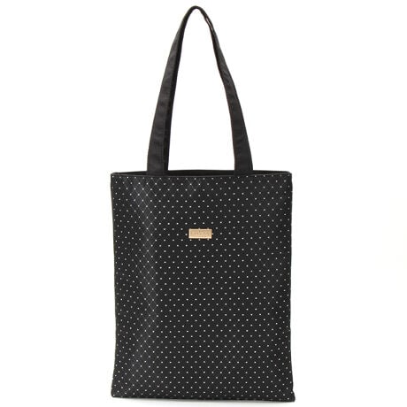 キラキラのジャガード生地を使用したエコバッグ。一見シックですが、裏地にクリサ゛ンテームのプリントを使用しており華やかです。スリムながらA4サイズが入り、サブバッグとしてお使いいただきやすいサイズ感です。まとめ紐でコンパクトになります。