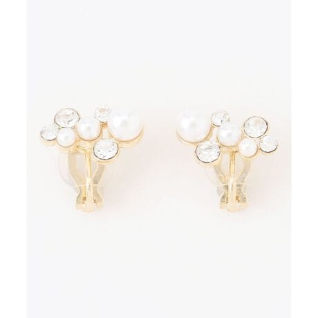 ■デザイン・素材・大小様々なイミテーションパールとビジューが繊細に組み合わさり、耳元で煌めく存在感を放ちます。・洗練されたデザインが、パーティーや特別なシーンにぴったりのアクセントに。・シンプルな装いに華やかさをプラスしたい方や、ギフトとしても喜ばれる一品。・耳が痛くなりにくいシリコンカバー付き。
