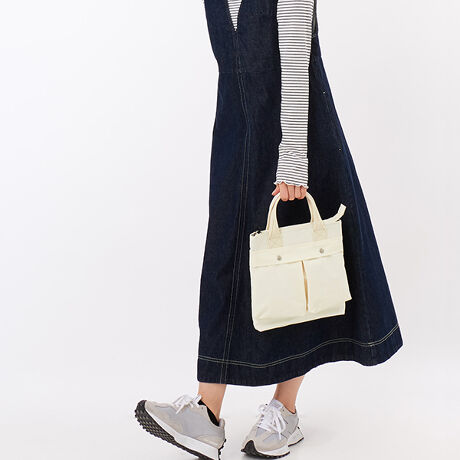 綿のキャンバス地のように重みがあるように見えて、持つと驚くほど軽い。仕上げに撥水加工も施し汚れに強いのも特徴です。