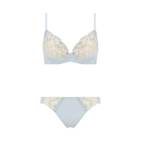可憐なエンブロイダリーレースがカップをふんわりと飾るフェミニンなシリーズ。