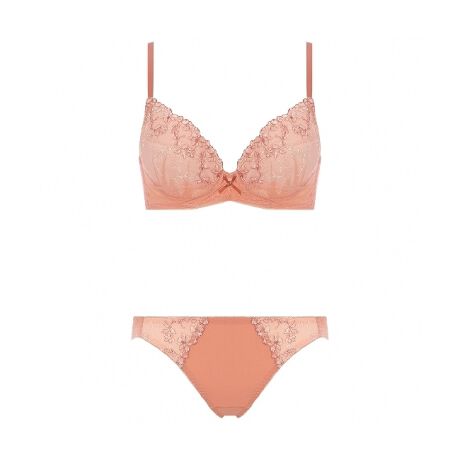 可憐なエンブロイダリーレースがカップをふんわりと飾るフェミニンなシリーズ。