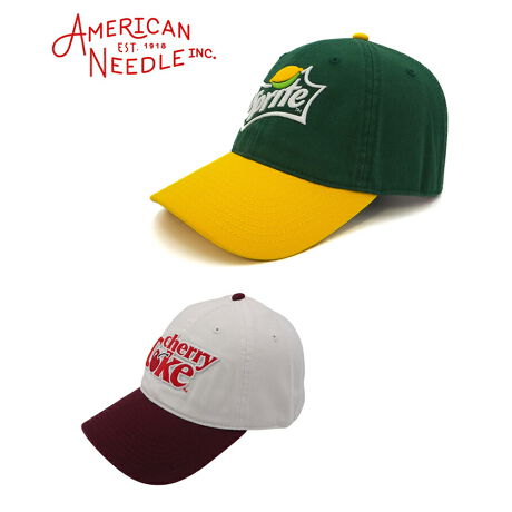 アメリカを代表する2つのドリンクロゴを立体刺繍でデザインした、American NeedleのBallparkシリーズキャップ。
