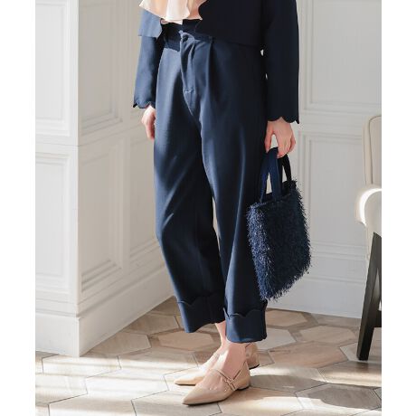 裾に波打つようなスカラップラインがポイントのワイドパンツ。