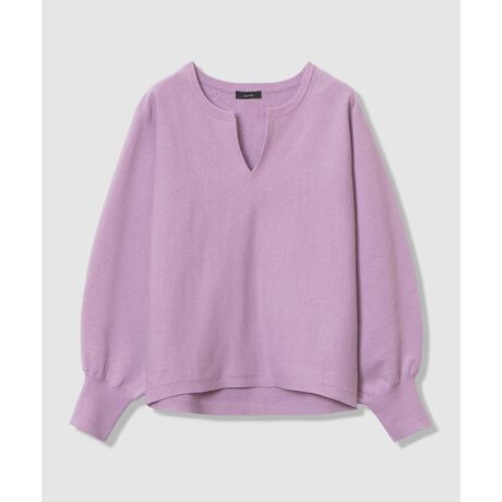 襟元は顔まわりをすっきりと見せてくれるキーネック。