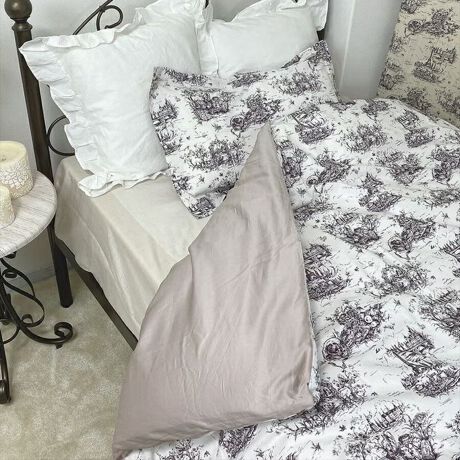 フレンチムード満点のシングルサイズの掛布団カバーと、ピローカバーのセットのベッドリネン。
