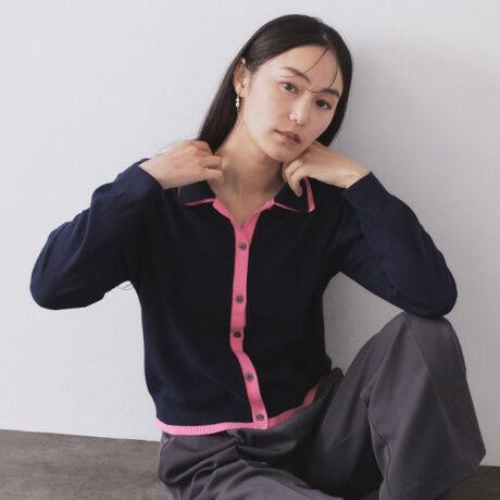 2枚衿と配色使いがキャッチーなポロ衿デザインニット