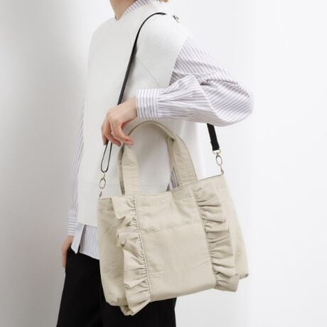 立体フリルが目を惹く大人フェミニンなトートバッグ。