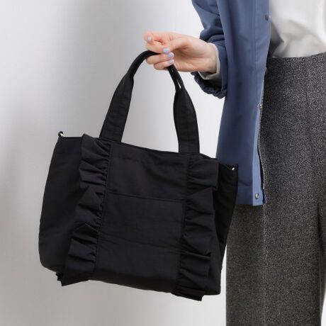 立体フリルが目を惹く大人フェミニンなトートバッグ。