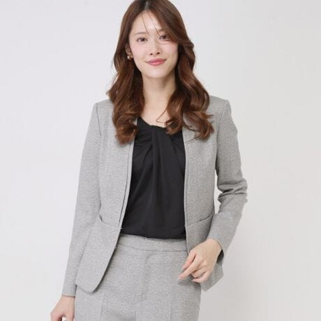 【手洗い可/日本製/スーツ可】美シルエットのカラーレスジャケット