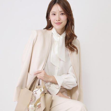 女性らしい程よいウエストのくびれとシルエットに拘った、クードシャンスらしいノーカラージャケットです。